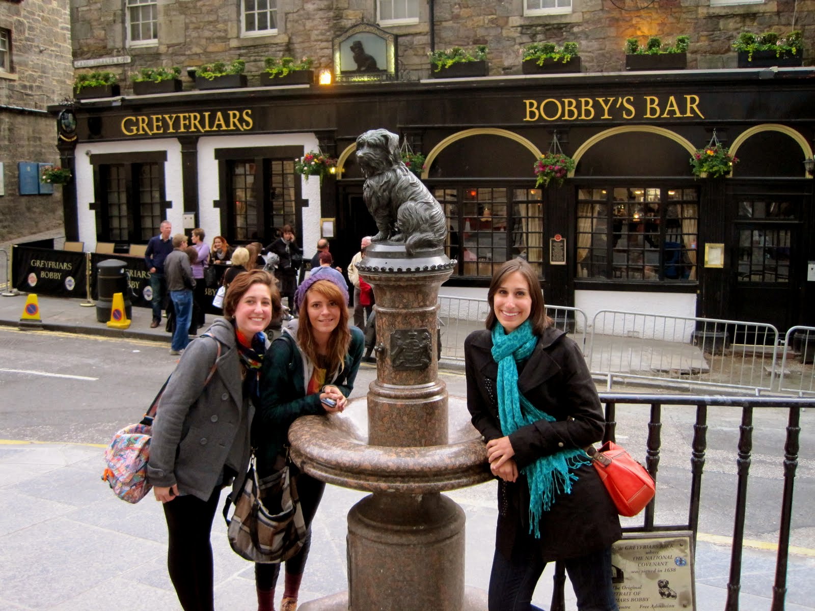 After the Royal Mile tour we were free to wander around the area. Larissa, Erin, and I wanted to find a place to have some coffee. We were pretty determined to find The Elephant House which we saw for like 2.5 seconds while we were on the tour. The Elephant House is said to be the café where J.K. Rowling began Harry Potter. We honestly had no idea where we were going and were just walking up the Royal Mile searching for it. At some point, one of us randomly decided we should turn left. We walked down our new-found street for a few minutes and just when we were about to give up, it appeared on our right! We did not think we would manage to find it so it was extremely exciting that we did!! We got some coffee and relaxed. Sitting was kind of a foreign thing for us then, so that was crazy-nice. I think the thing I liked most about The Elephant House was that it looked like a regular café. The only place they even mentioned Harry Potter or J.K. Rowling was on the front of the building. But on the inside, they weren't Harry Potter-obsessed. The bathroom was a different story-but that was obviously put together by adoring fans. The bathroom was filled with all kinds of Harry Potter graffiti. It was too funny—we even wrote our names on the wall!